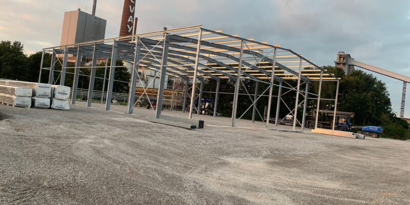 Erdarbeiten für die neue Halle verlaufen planmäßig und werden vollständig mit der eigenen Technik durchgeführt.